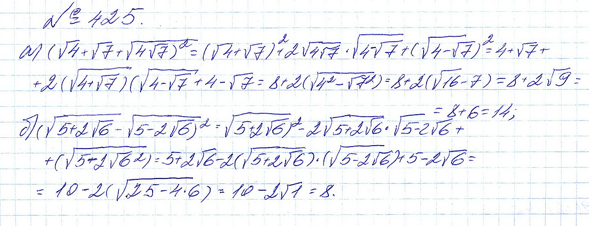 Правильный ответ к заданию ГДЗ по алгебре 8 класс Макарычев под редакцией Теляковского 2024 ФГОС Номера, номер 425 бесплатно онлайн