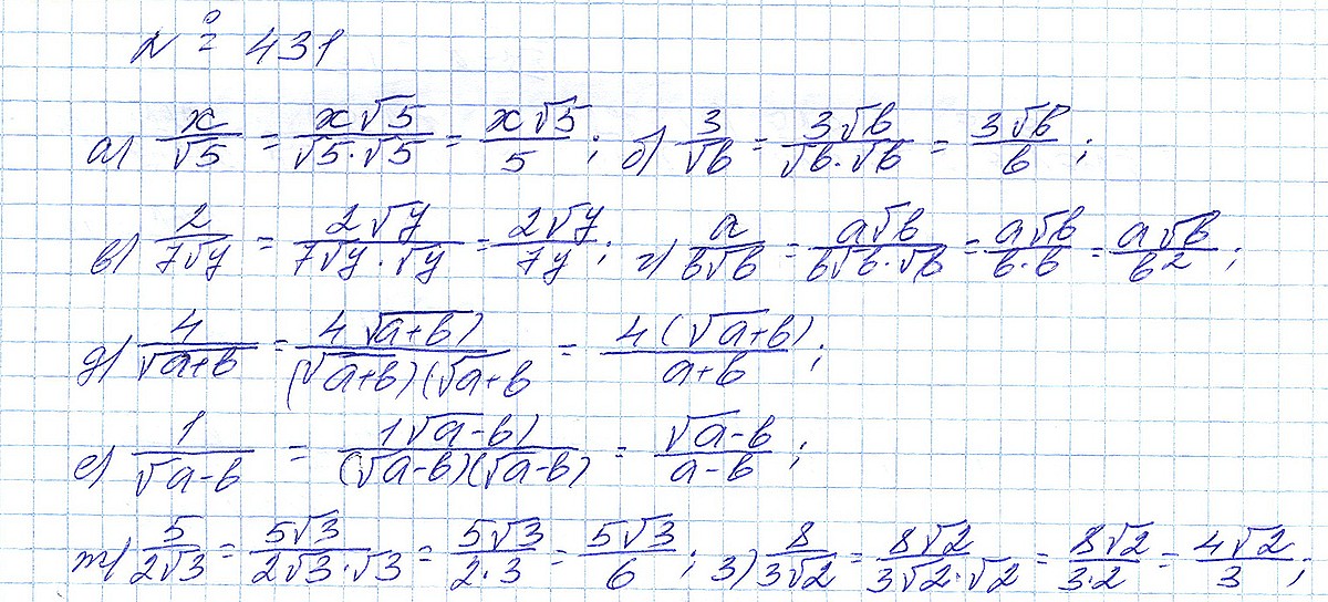 Правильный ответ к заданию ГДЗ по алгебре 8 класс Макарычев под редакцией Теляковского 2024 ФГОС Номера, номер 431 бесплатно онлайн