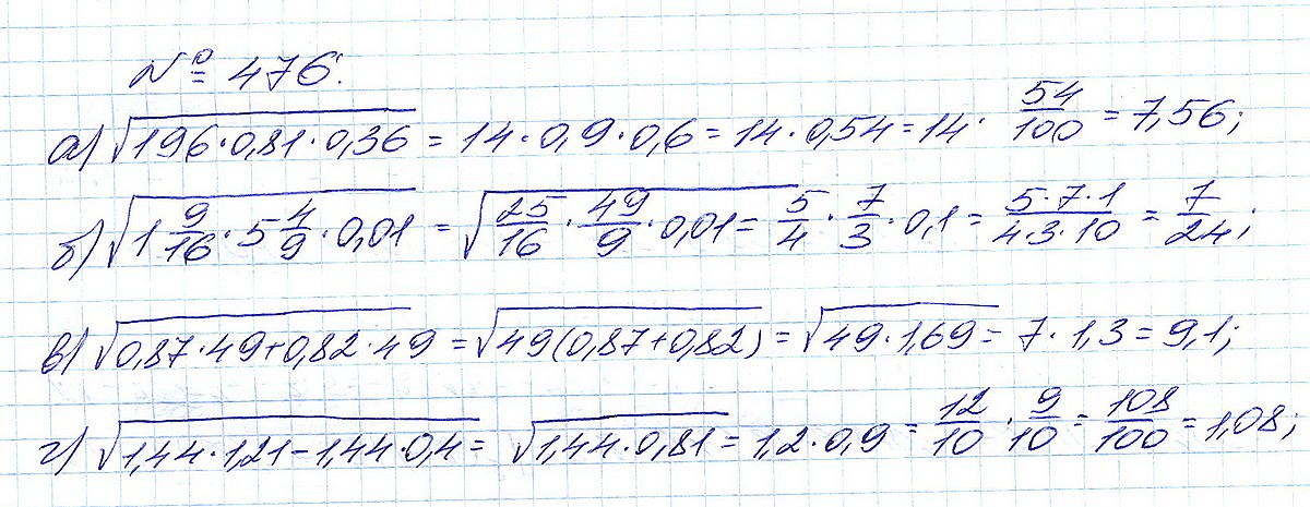 Правильный ответ к заданию ГДЗ по алгебре 8 класс Макарычев под редакцией Теляковского 2024 ФГОС Номера, номер 476 бесплатно онлайн
