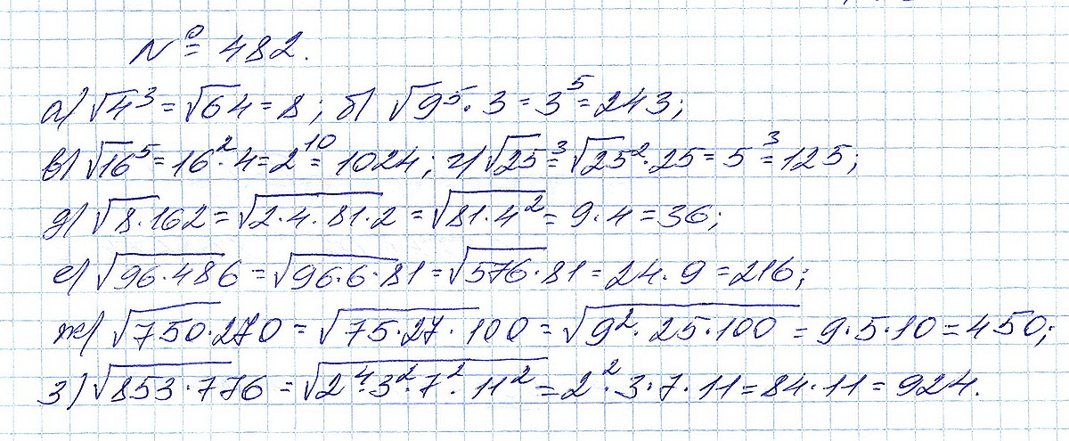 Правильный ответ к заданию ГДЗ по алгебре 8 класс Макарычев под редакцией Теляковского 2024 ФГОС Номера, номер 482 бесплатно онлайн