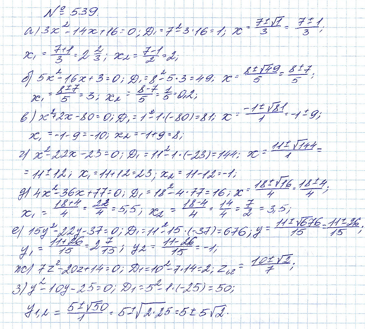 Правильный ответ к заданию ГДЗ по алгебре 8 класс Макарычев под редакцией Теляковского 2024 ФГОС Номера, номер 539 бесплатно онлайн