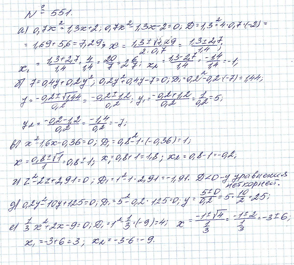 Правильный ответ к заданию ГДЗ по алгебре 8 класс Макарычев под редакцией Теляковского 2024 ФГОС Номера, номер 551 бесплатно онлайн