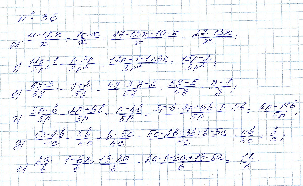 Правильный ответ к заданию ГДЗ по алгебре 8 класс Макарычев под редакцией Теляковского 2024 ФГОС Номера, номер 56 бесплатно онлайн