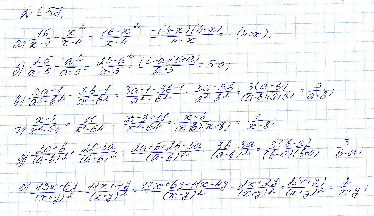 Правильный ответ к заданию ГДЗ по алгебре 8 класс Макарычев под редакцией Теляковского 2024 ФГОС Номера, номер 57 бесплатно онлайн