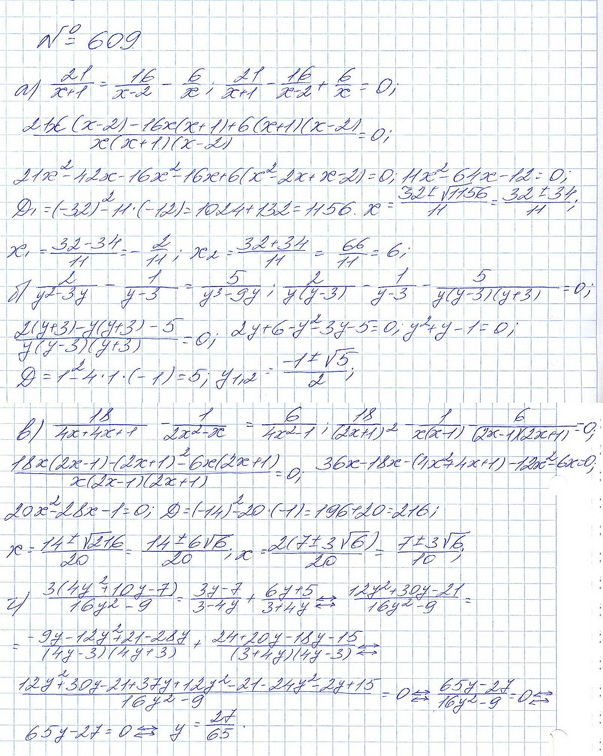 Правильный ответ к заданию ГДЗ по алгебре 8 класс Макарычев под редакцией Теляковского 2024 ФГОС Номера, номер 609 бесплатно онлайн