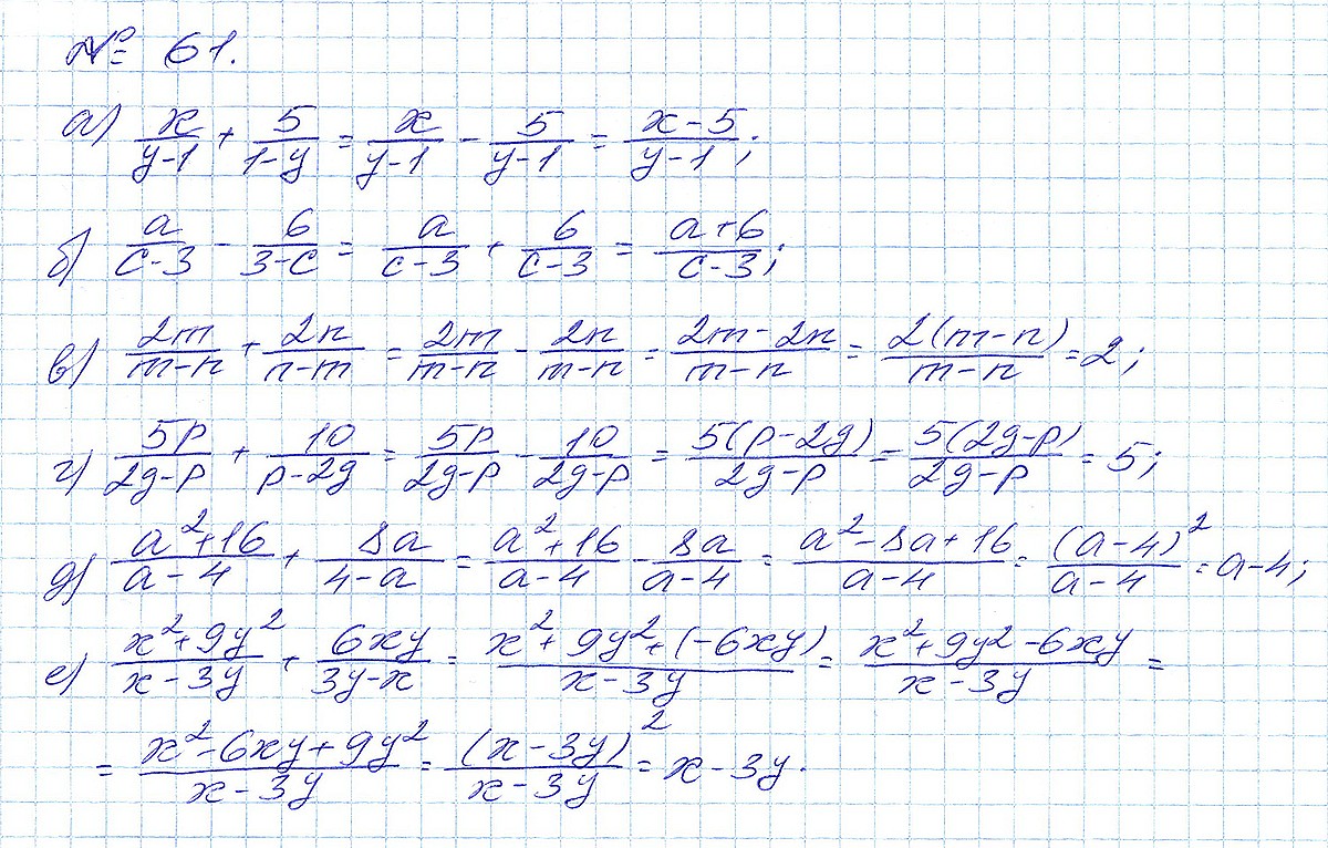 Правильный ответ к заданию ГДЗ по алгебре 8 класс Макарычев под редакцией Теляковского 2024 ФГОС Номера, номер 61 бесплатно онлайн