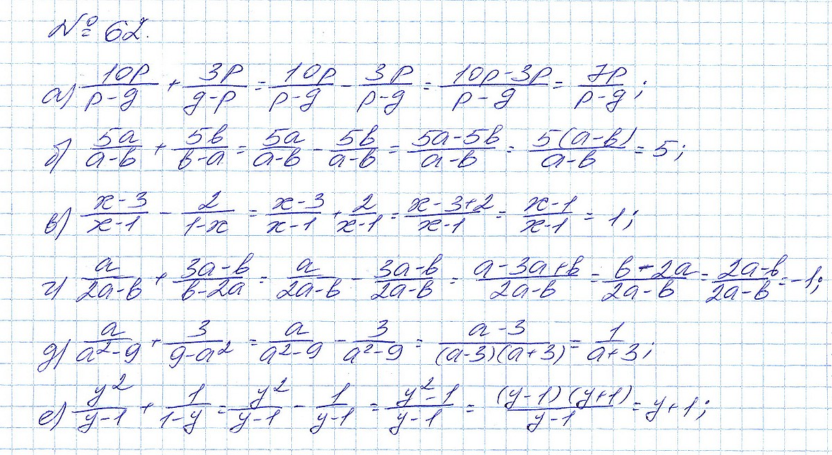Правильный ответ к заданию ГДЗ по алгебре 8 класс Макарычев под редакцией Теляковского 2024 ФГОС Номера, номер 62 бесплатно онлайн