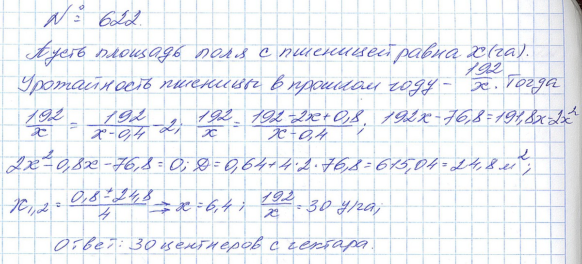 Правильный ответ к заданию ГДЗ по алгебре 8 класс Макарычев под редакцией Теляковского 2024 ФГОС Номера, номер 622 бесплатно онлайн