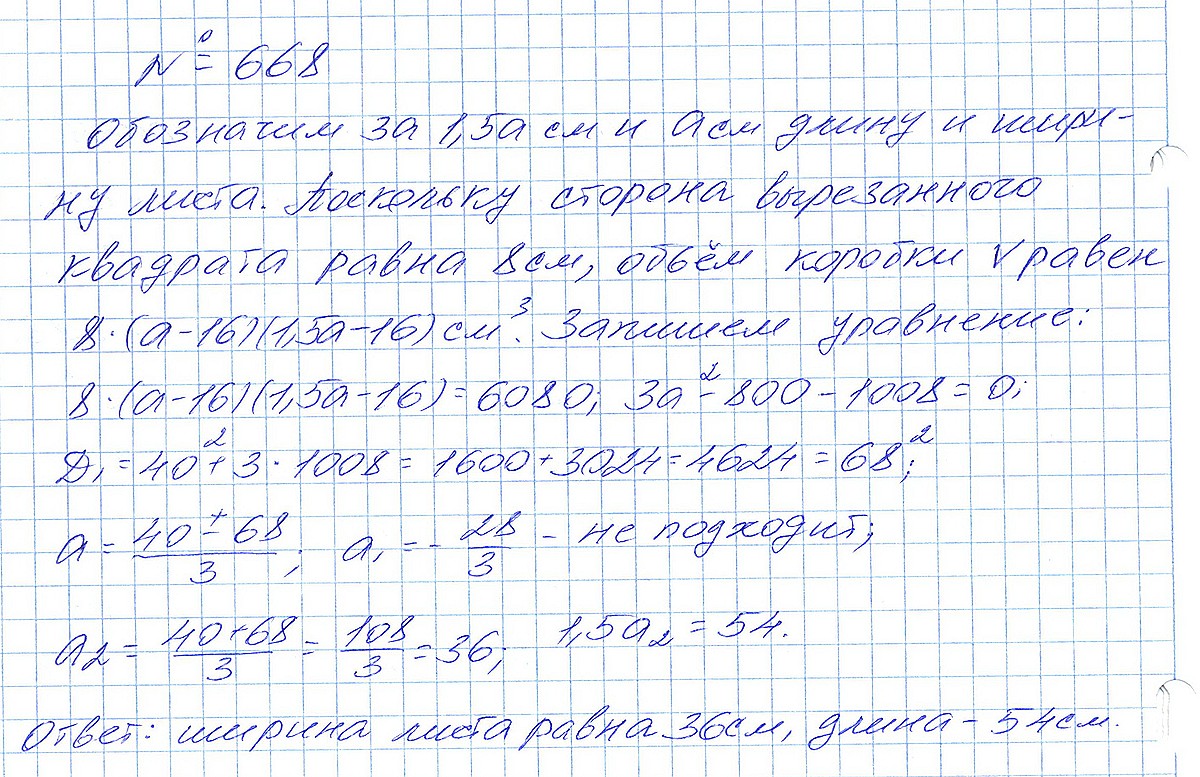 Правильный ответ к заданию ГДЗ по алгебре 8 класс Макарычев под редакцией Теляковского 2024 ФГОС Номера, номер 668 бесплатно онлайн