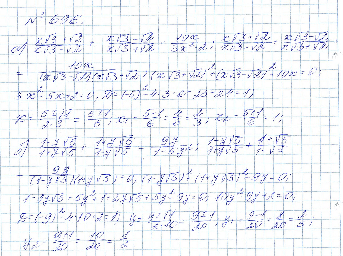 Правильный ответ к заданию ГДЗ по алгебре 8 класс Макарычев под редакцией Теляковского 2024 ФГОС Номера, номер 696 бесплатно онлайн