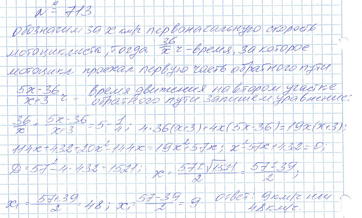 Правильный ответ к заданию ГДЗ по алгебре 8 класс Макарычев под редакцией Теляковского 2024 ФГОС Номера, номер 713 бесплатно онлайн