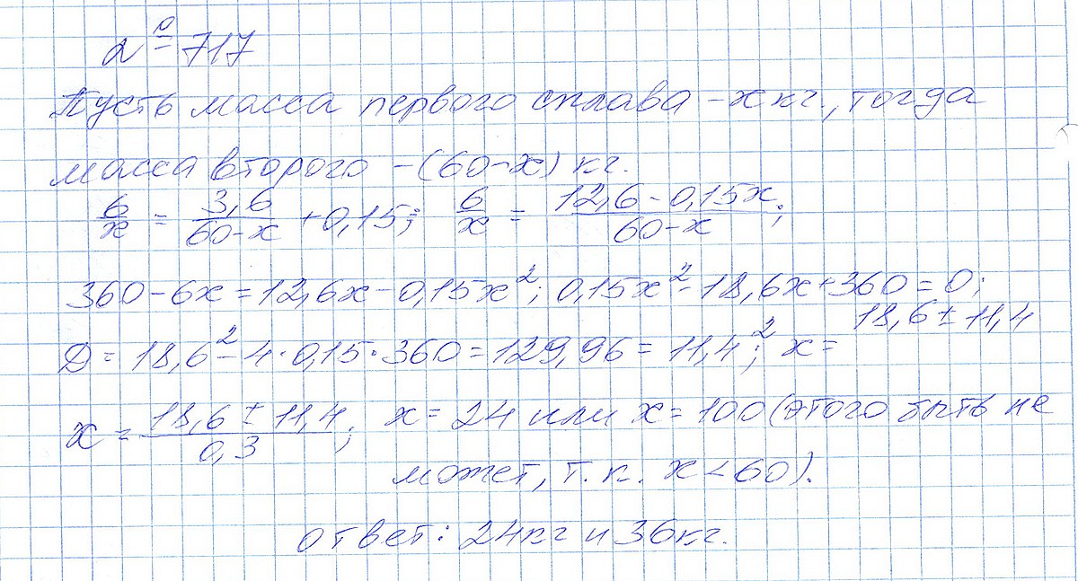 Правильный ответ к заданию ГДЗ по алгебре 8 класс Макарычев под редакцией Теляковского 2024 ФГОС Номера, номер 717 бесплатно онлайн