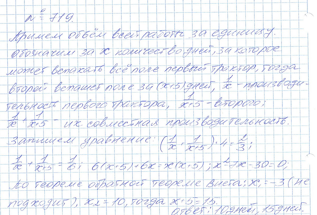 Правильный ответ к заданию ГДЗ по алгебре 8 класс Макарычев под редакцией Теляковского 2024 ФГОС Номера, номер 719 бесплатно онлайн