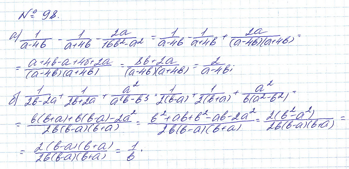 Правильный ответ к заданию ГДЗ по алгебре 8 класс Макарычев под редакцией Теляковского 2024 ФГОС Номера, номер 98 бесплатно онлайн