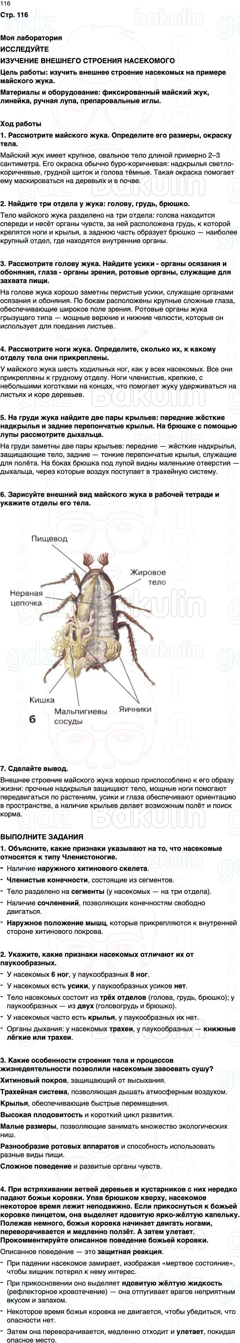 Материалы и оборудование: фиксированный майский жук, линейка, ручная лупа, препаровальные иглы.