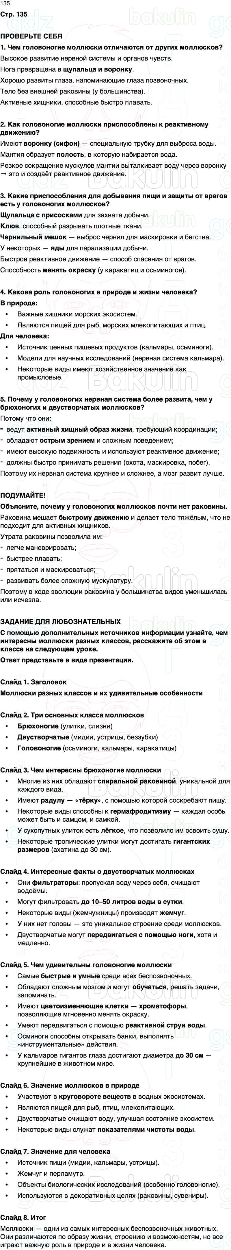 С помощью дополнительных источников информации узнайте, чем интересны моллюски разных классов, расскажите об этом в классе на следующем уроке.