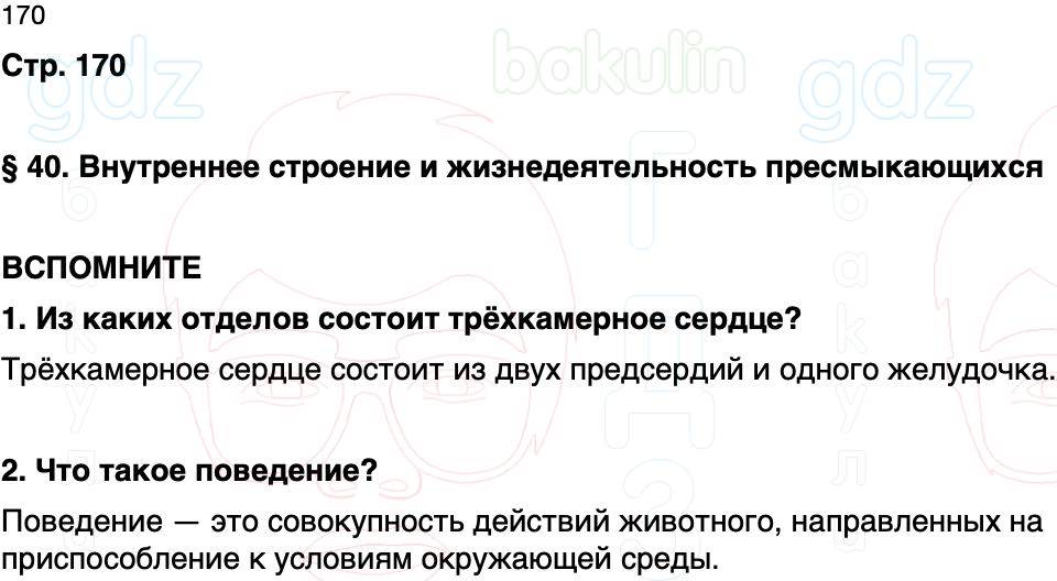 § 40. Внутреннее строение и жизнедеятельность пресмыкающихся
