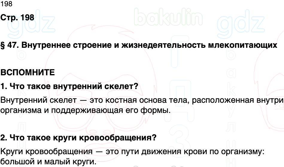 § 47. Внутреннее строение и жизнедеятельность млекопитающих