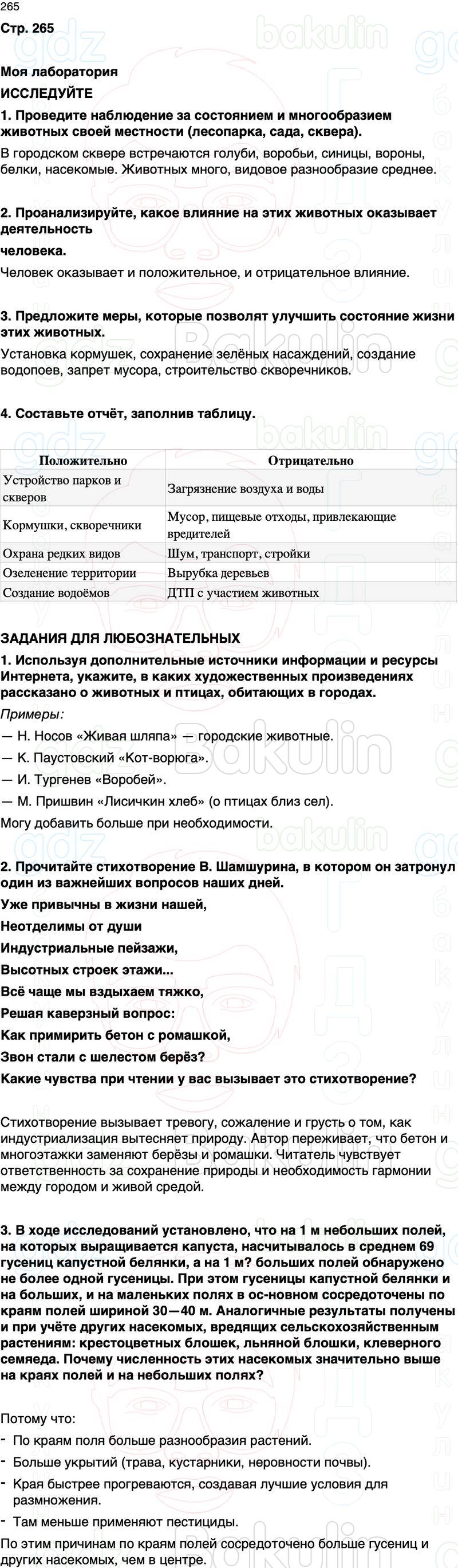 1. Проведите наблюдение за состоянием и многообразием животных своей местности (лесопарка, сада, сквера).