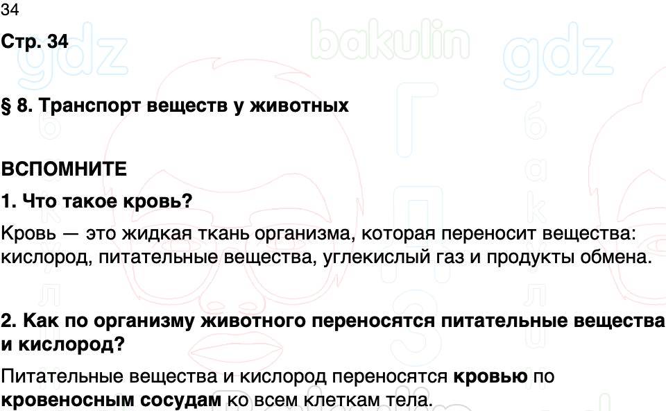 2. Как по организму животного переносятся питательные вещества и кислород?
