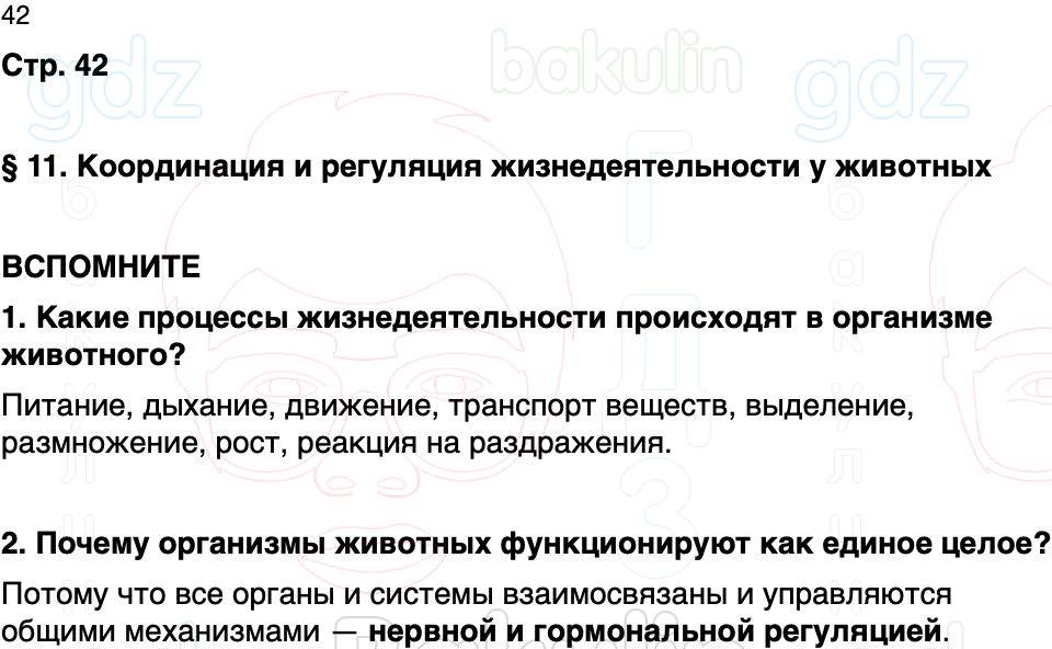 ВСПОМНИТЕ 1. Какие процессы жизнедеятельности происходят в организме животного?