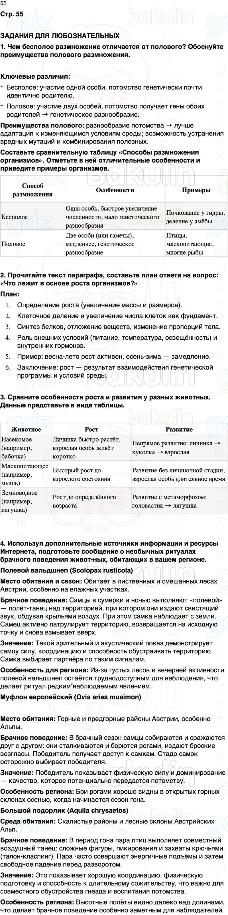 1. Чем бесполое размножение отличается от полового? Обоснуйте преимущества полового размножения. Составьте сравнительную таблицу «Способы размножения организмов». Отметьте в ней отличительные особенности и приведите примеры организмов.