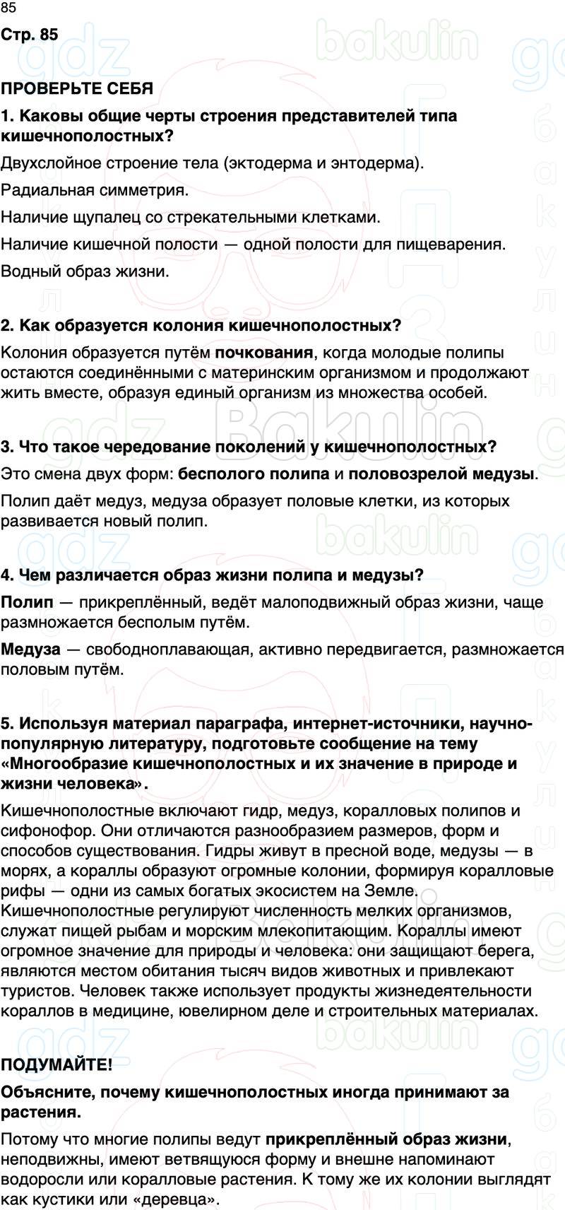5. Используя материал параграфа, интернет-источники, научно-популярную литературу, подготовьте сообщение на тему «Многообразие кишечнополостных и их значение в природе и жизни человека».