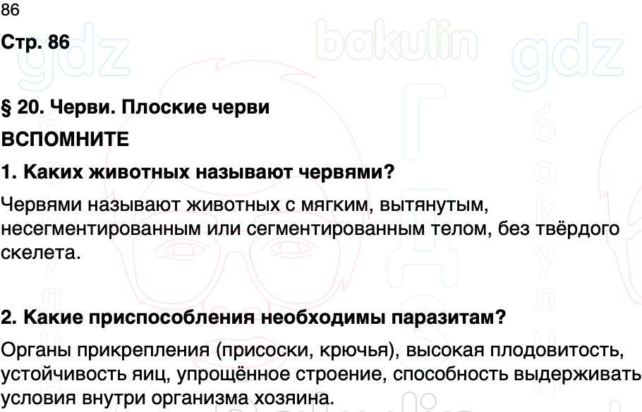 § 20. Черви. Плоские черви ВСПОМНИТЕ 1. Каких животных называют червями?