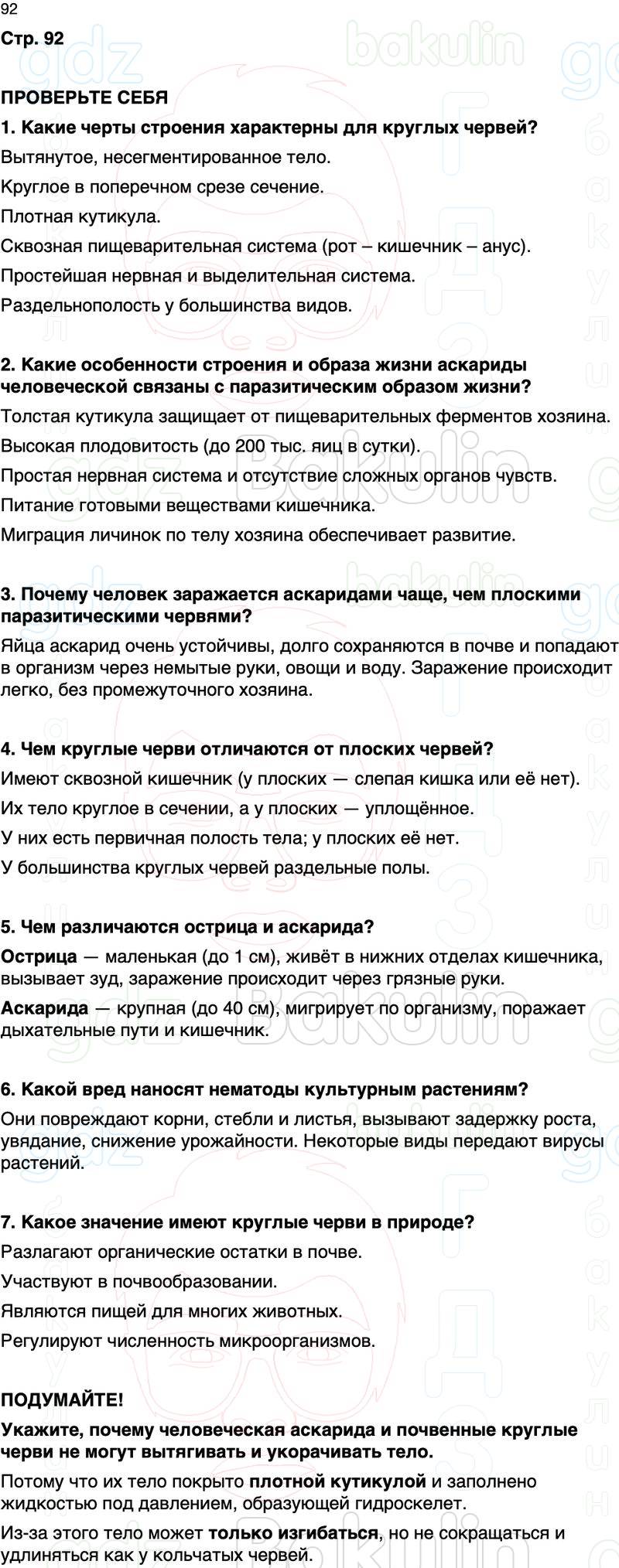 2. Какие особенности строения и образа жизни аскариды человеческой связаны с паразитическим образом жизни?