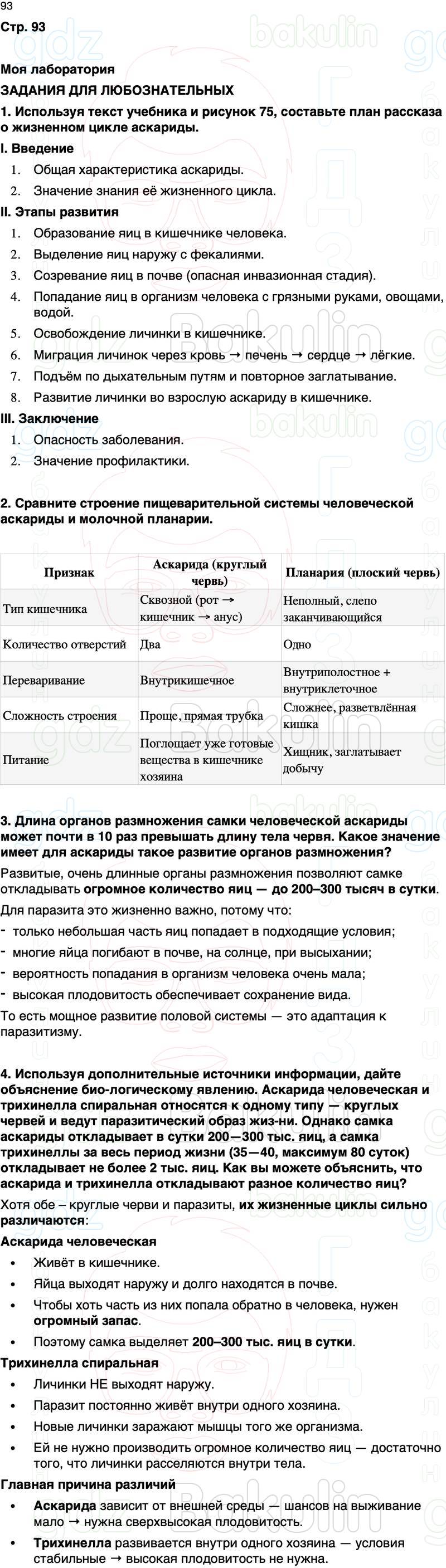 1. Используя текст учебника и рисунок 75, составьте план рассказа о жизненном цикле аскариды.