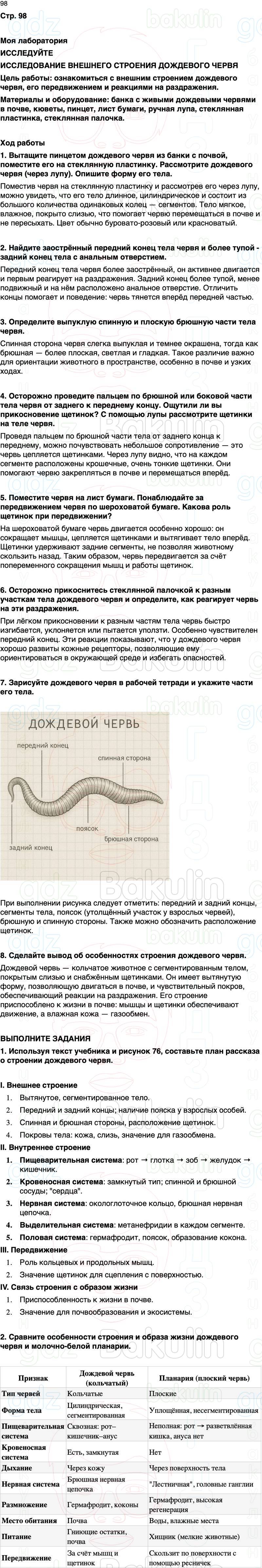 1. Используя текст учебника и рисунок 76, составьте план рассказа о строении дождевого червя.