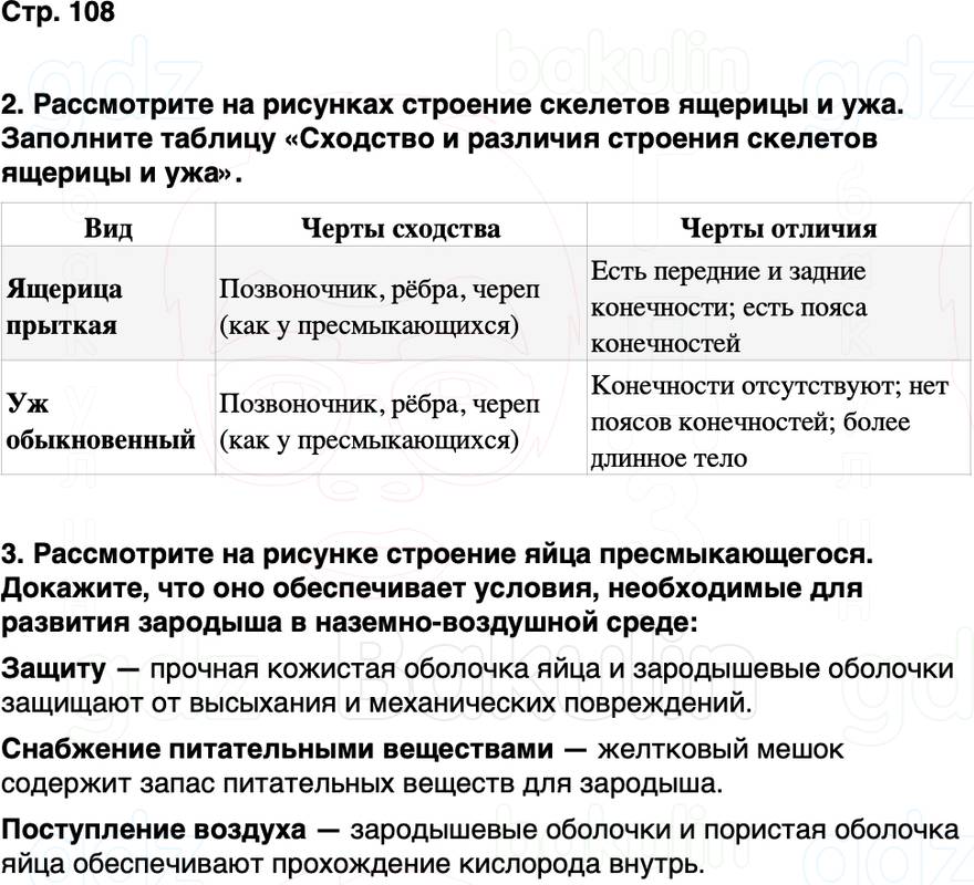 2. Рассмотрите на рисунках строение скелетов ящерицы и ужа. Заполните таблицу «Сходство и различия строения скелетов ящерицы и ужа».