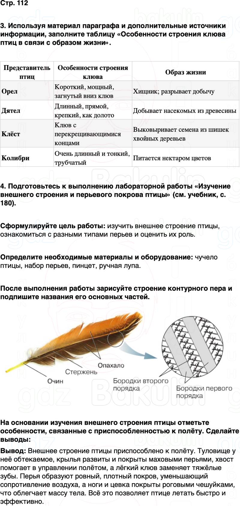 3. Используя материал параграфа и дополнительные источники информации, заполните таблицу «Особенности строения клюва птиц в связи с образом жизни».