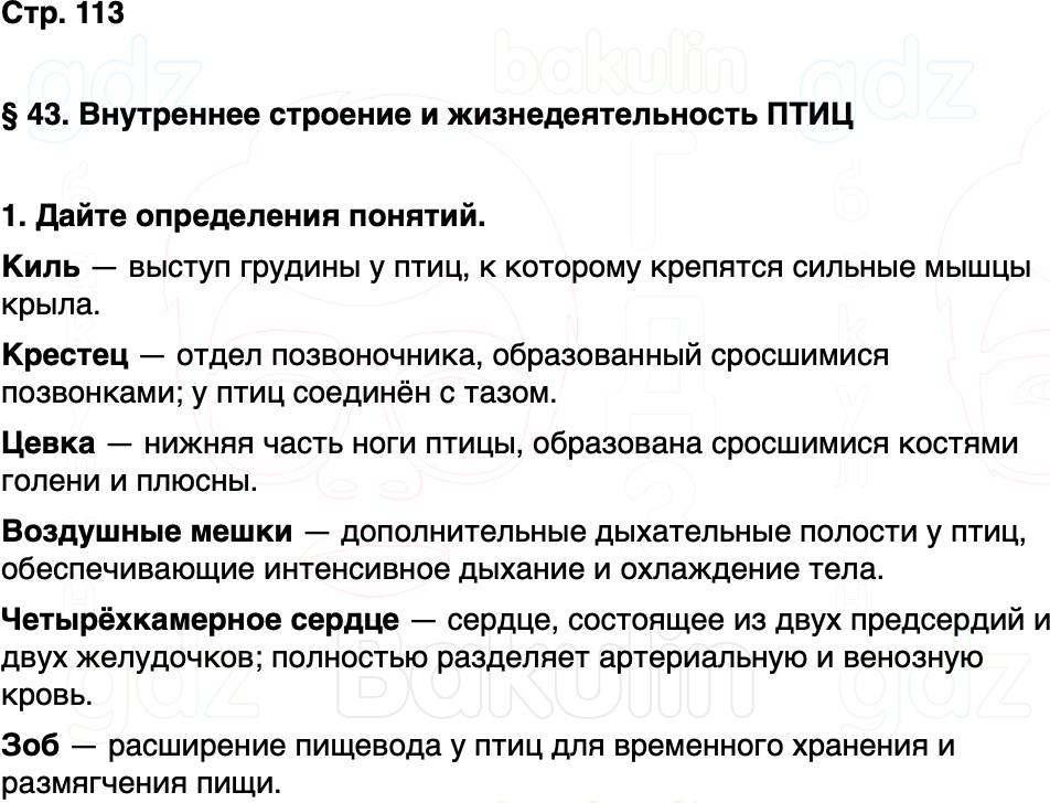 § 43. Внутреннее строение и жизнедеятельность ПТИЦ