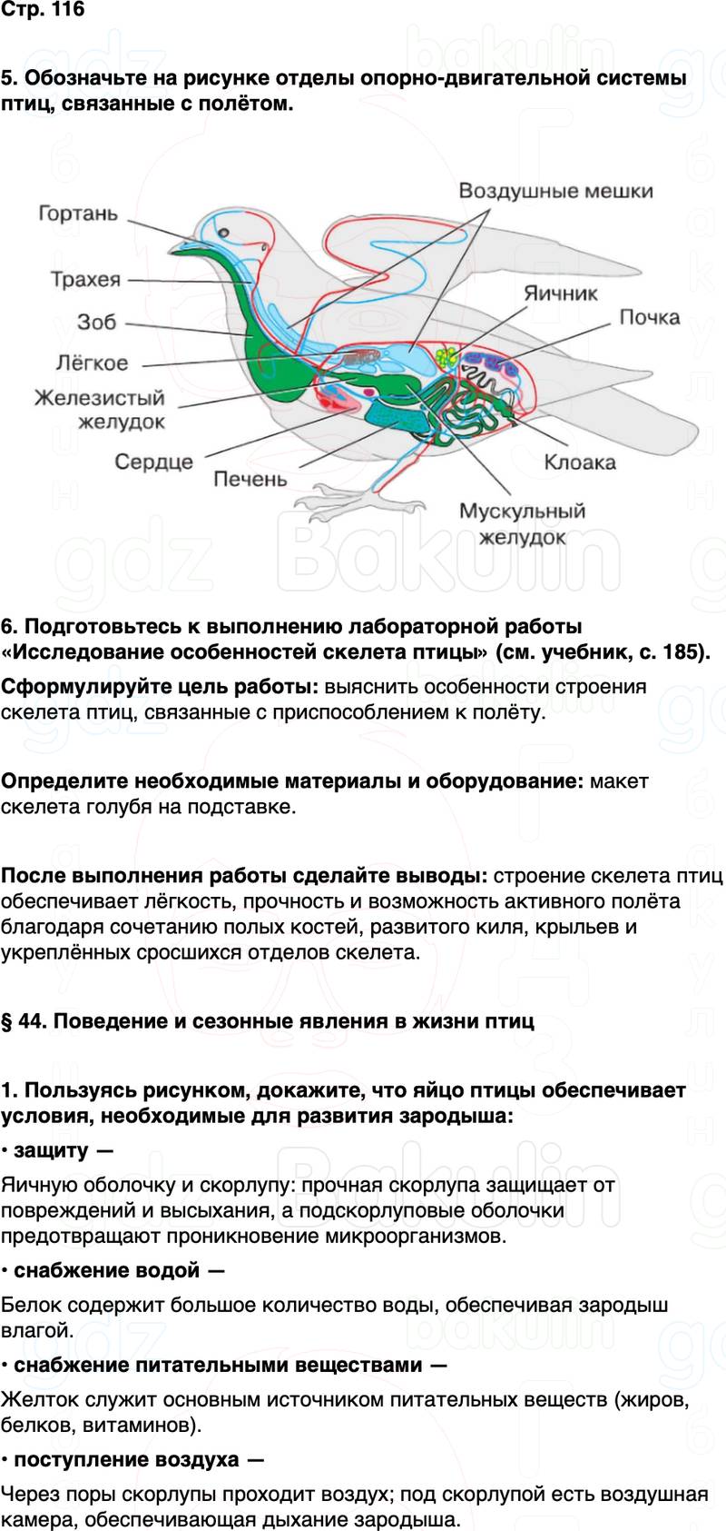 6. Подготовьтесь к выполнению лабораторной работы «Исследова- ние особенностей скелета птицы» (см. учебник, с. 185).