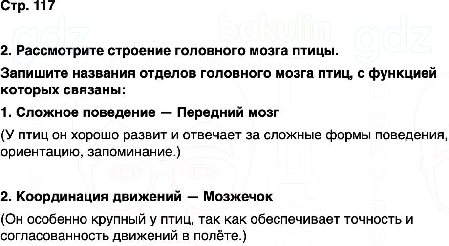2. Рассмотрите строение головного мозга птицы. Запишите названия отделов головного мозга птиц, с функцией кото- рых связаны: