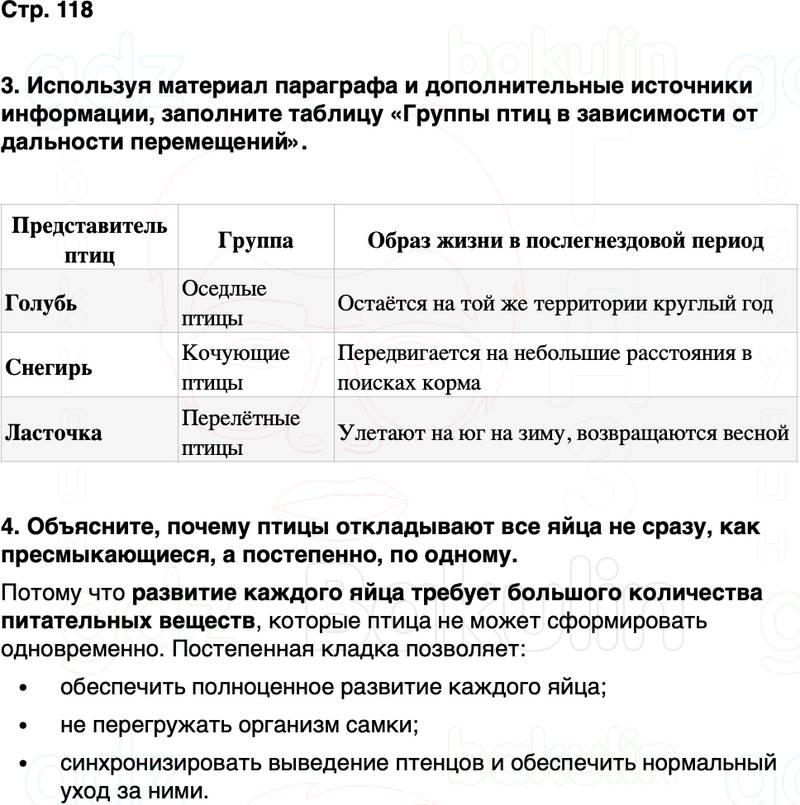 3. Используя материал параграфа и дополнительные источники информации, заполните таблицу «Группы птиц в зависимости от дальности перемещений».