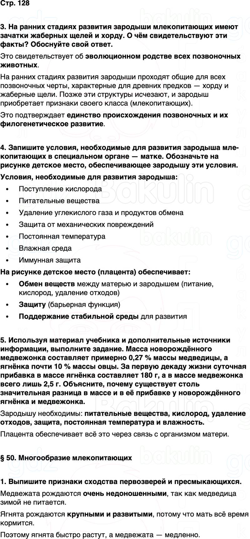 4. Запишите условия, необходимые для развития зародыша мле- копитающих в специальном органе — матке. Обозначьте на рисунке детское место, обеспечивающее зародышу эти условия.