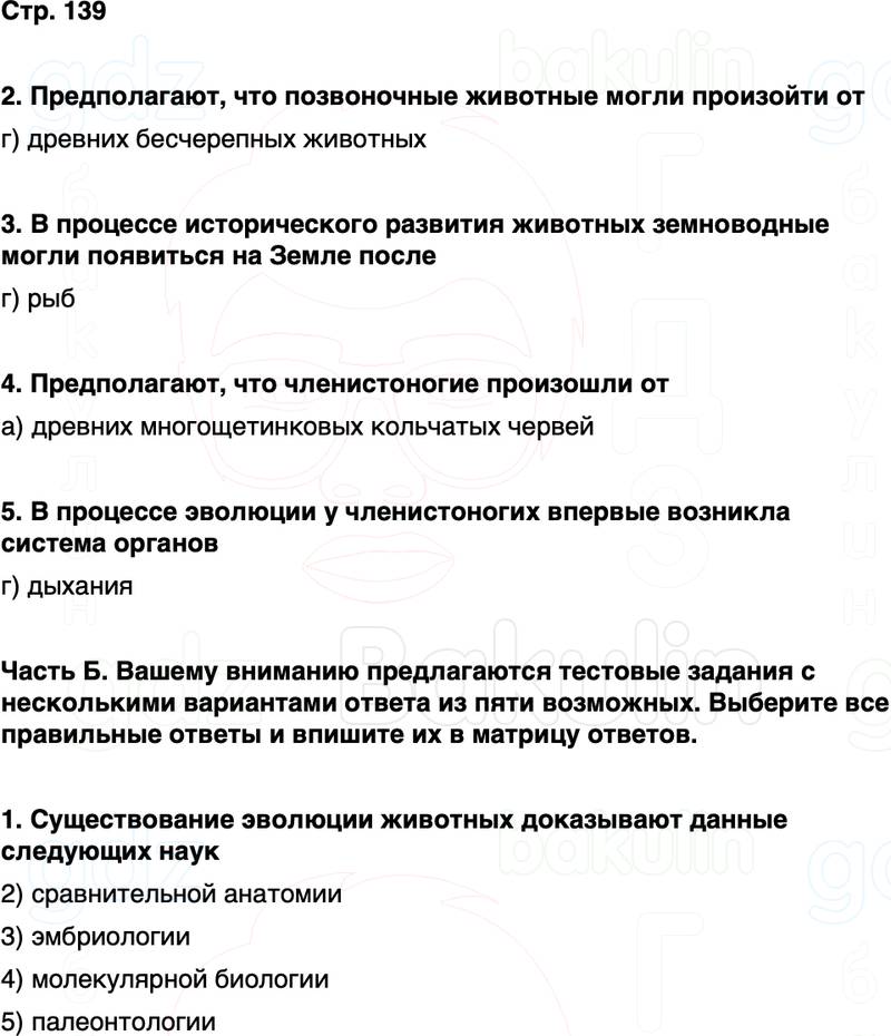 Часть Б. Вашему вниманию предлагаются тестовые задания с несколькими вариантами ответа из пяти возможных. Выберите все правильные ответы и впишите их в матрицу ответов.