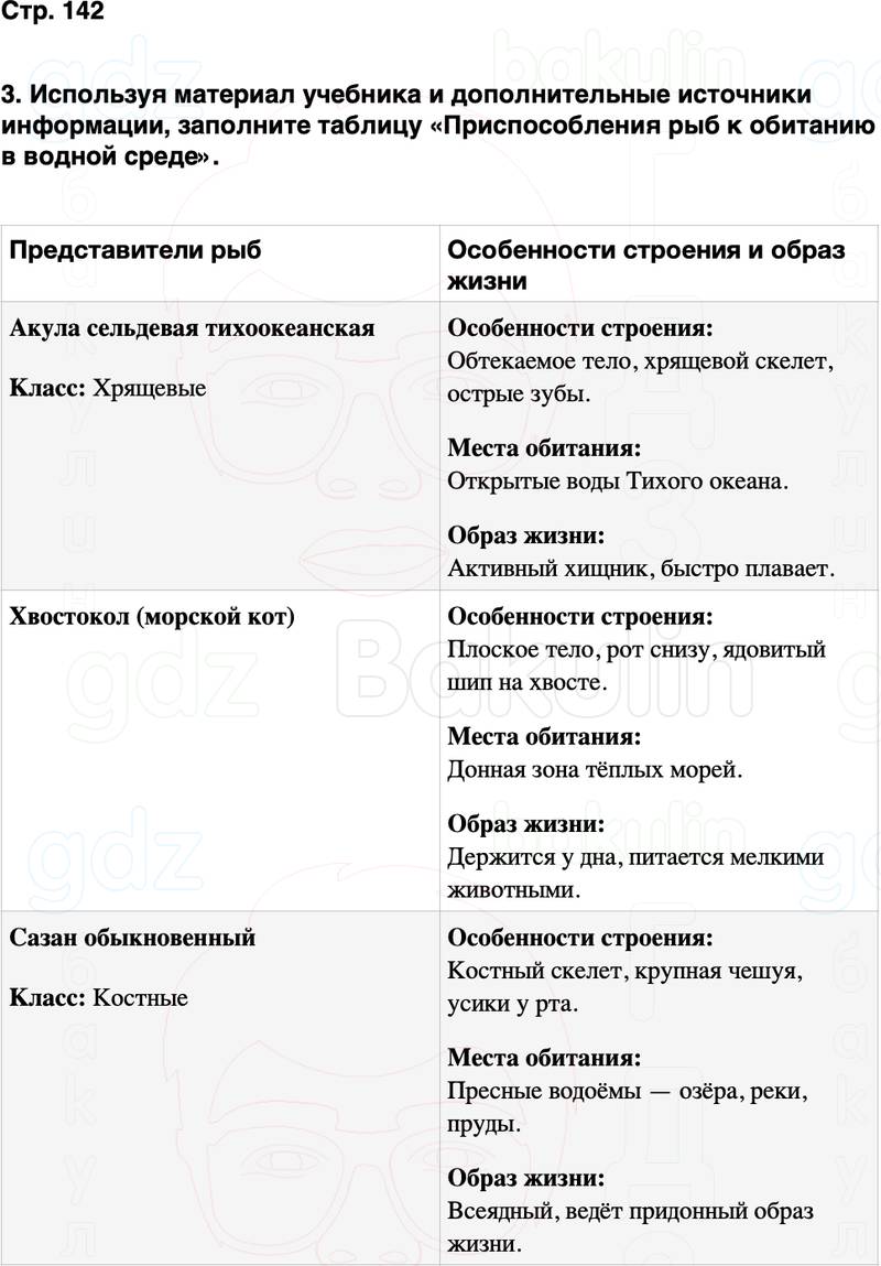 3. Используя материал учебника и дополнительные источники информации, заполните таблицу «Приспособления рыб к обитанию в водной среде».