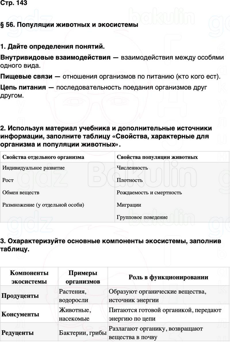 § 56. Популяции животных и экосистемы