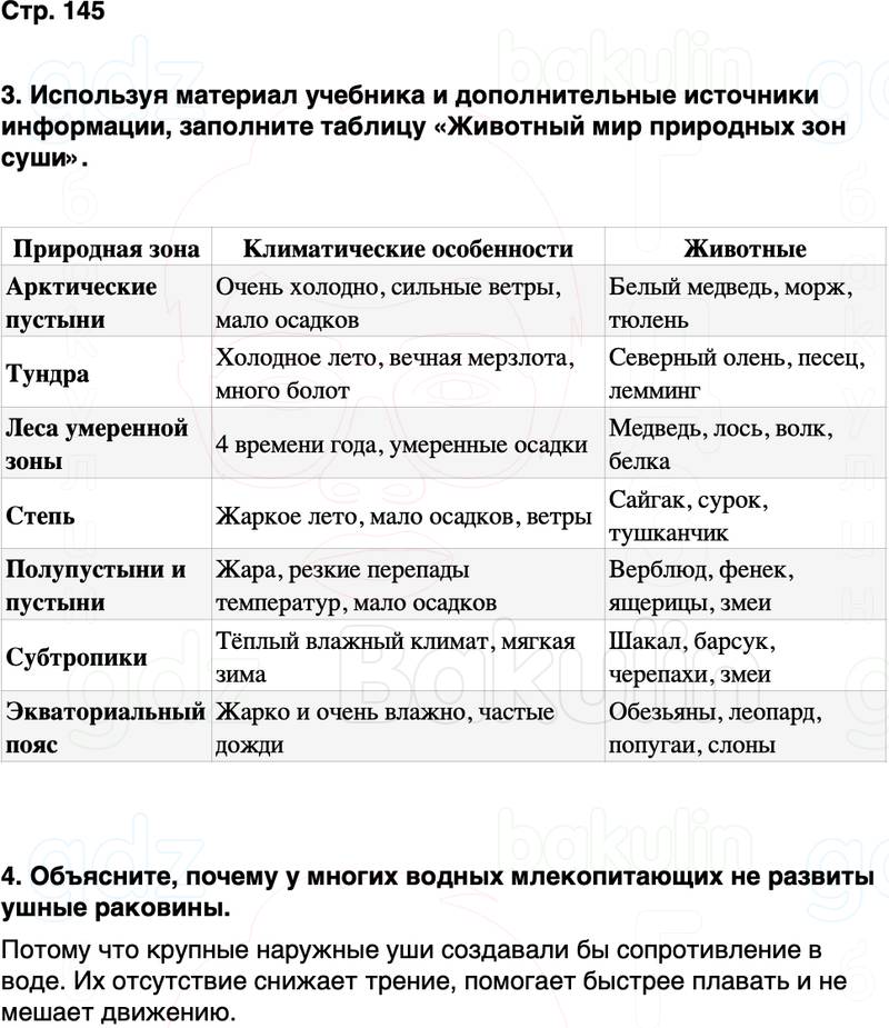 3. Используя материал учебника и дополнительные источники информации, заполните таблицу «Животный мир природных зон суши».