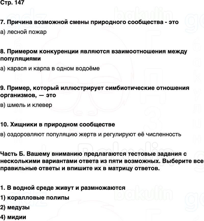 Часть Б. Вашему вниманию предлагаются тестовые задания с несколькими вариантами ответа из пяти возможных. Выберите все правильные ответы и впишите их в матрицу ответов.