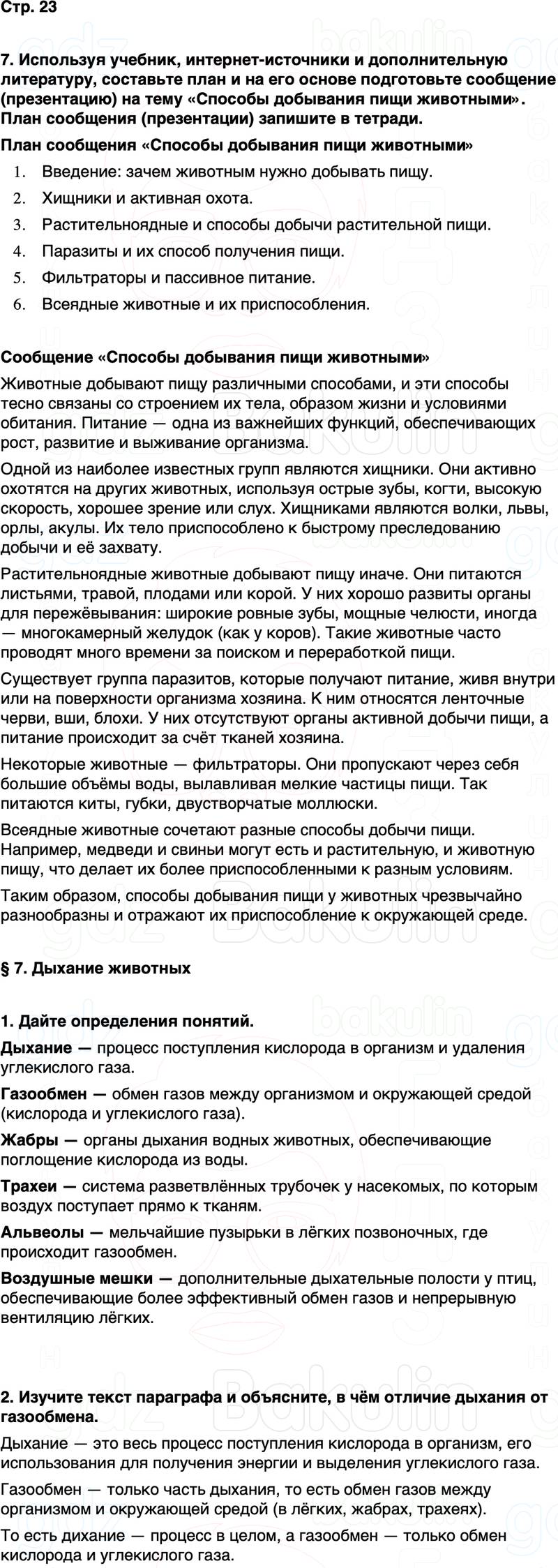 7. Используя учебник, интернет-источники и дополнительную литературу, составьте план и на его основе подготовьте сообщение (презентацию) на тему «Способы добывания пищи животными». План сообщения (презентации) запишите в тетради.
