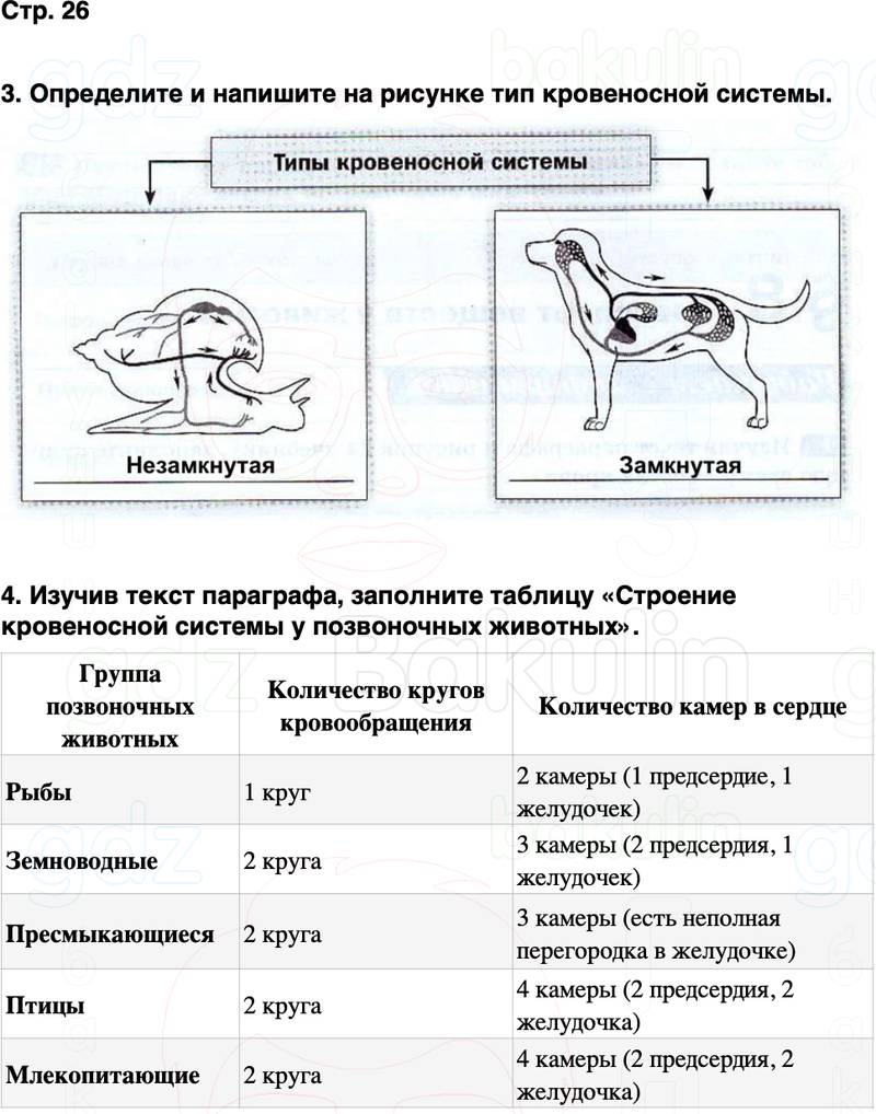 4. Изучив текст параграфа, заполните таблицу «Строение кровеносной системы у позвоночных животных».