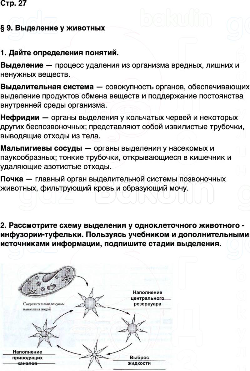 § 9. Выделение у животных