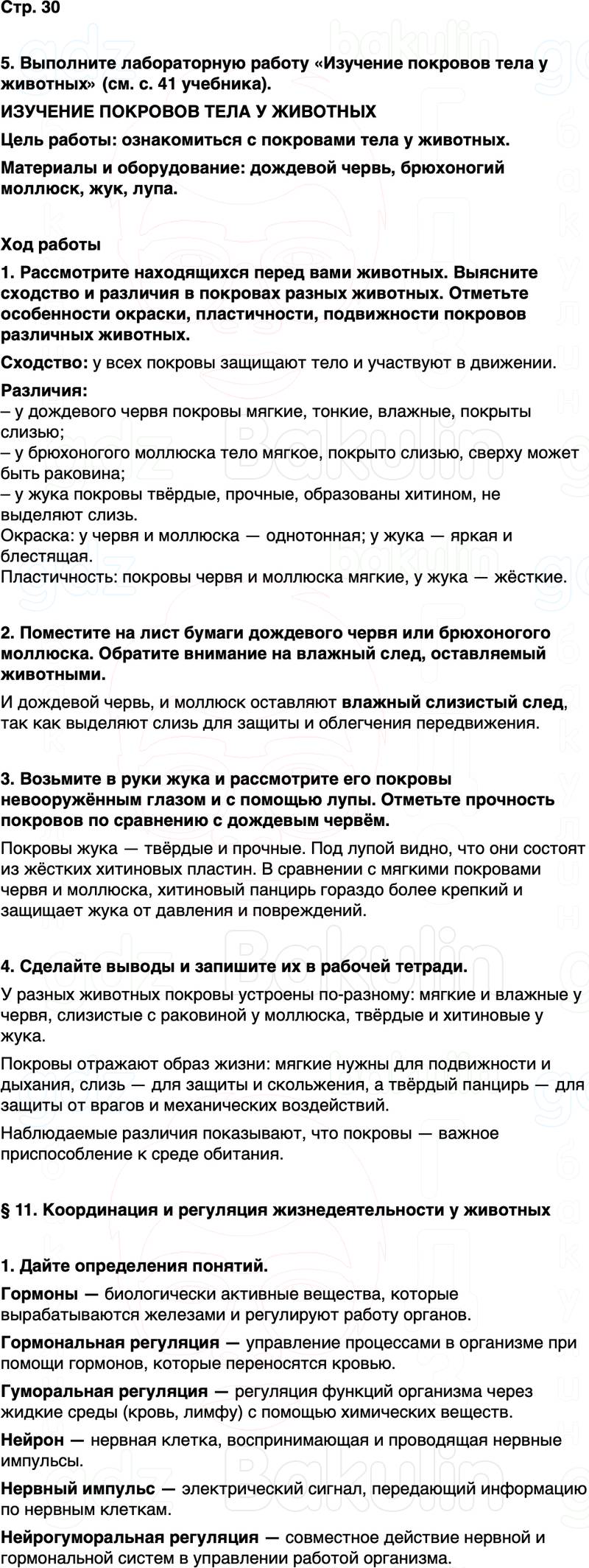 5. Выполните лабораторную работу «Изучение покровов тела у животных» (см. с. 41 учебника).