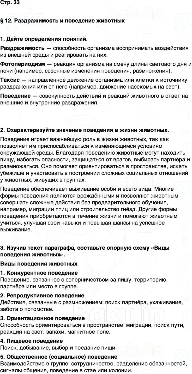 § 12. Раздражимость и поведение животных