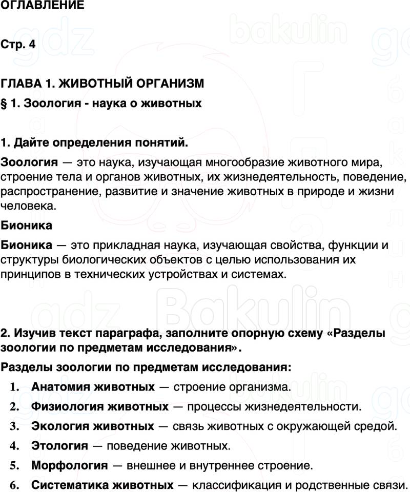 ГЛАВА 1. ЖИВОТНЫЙ ОРГАНИЗМ § 1. Зоология - наука о животных