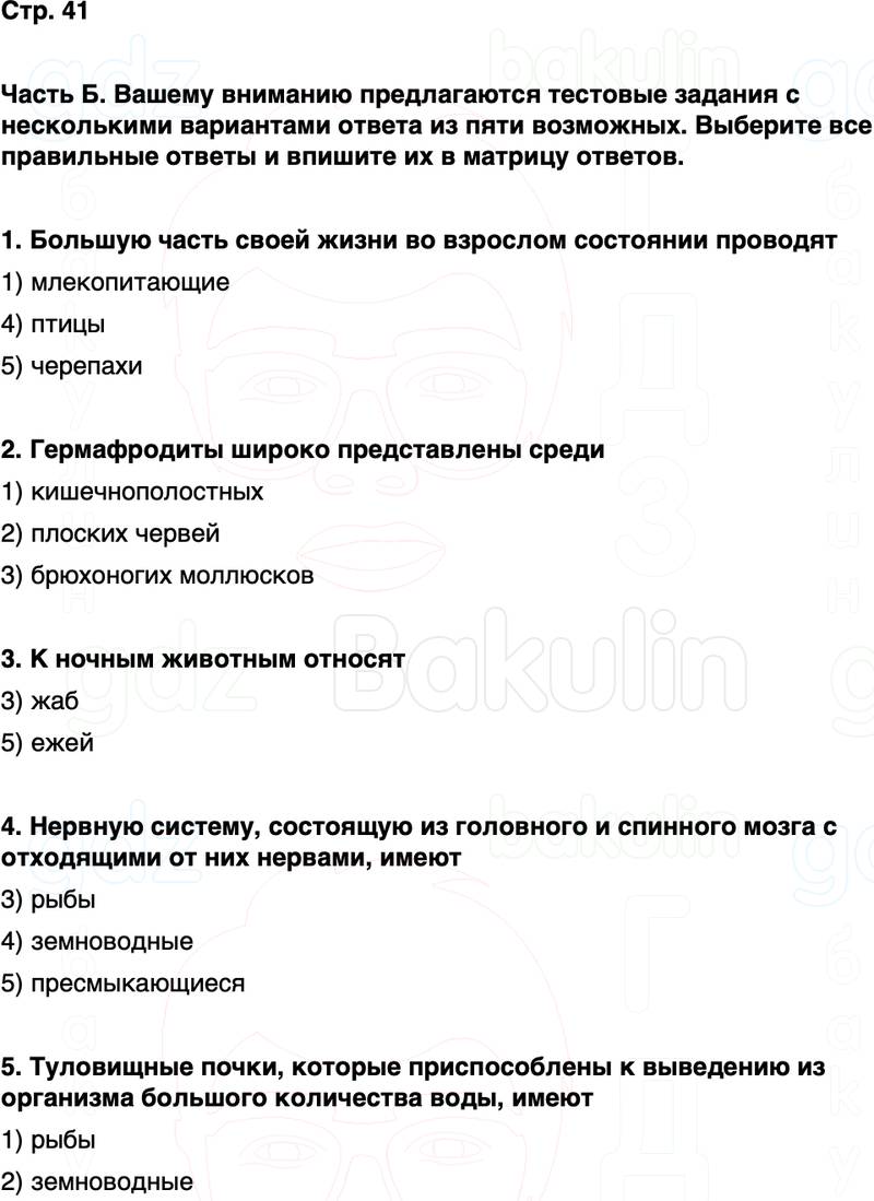 Часть Б. Вашему вниманию предлагаются тестовые задания с несколькими вариантами ответа из пяти возможных. Выберите все правильные ответы и впишите их в матрицу ответов.